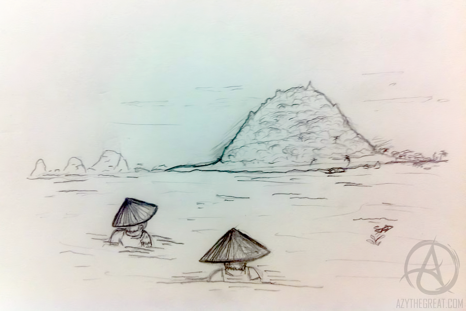 An idea sparked in December 2013 to represent Kusu’s legend through the lens of maritime history. As my sketching skills were limited, I asked Hazwani if she was willing to do it. She agreed.